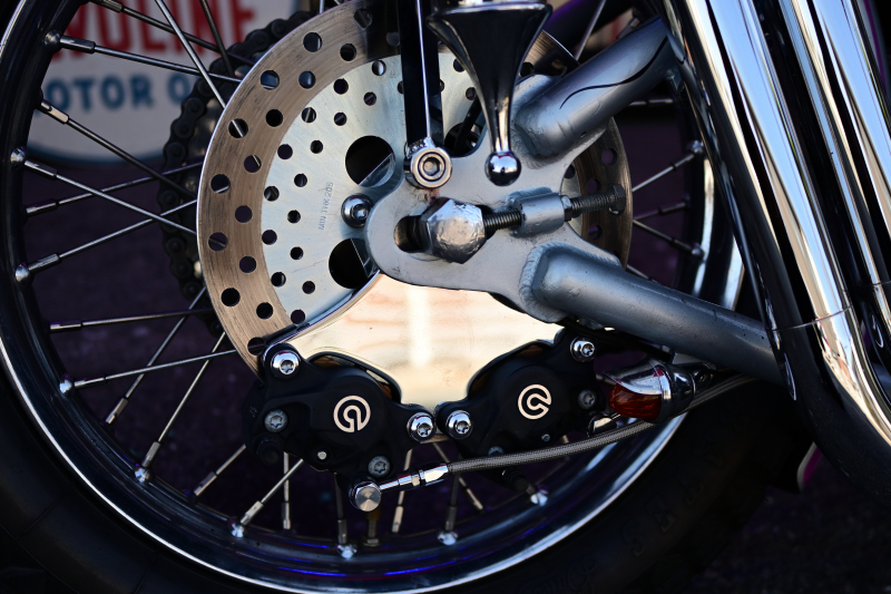 持ち込まれたリジットショベルはアメリカのカスタムショップRowdy House Customsのオーナーが所有していたバイクで、アメリカの雰囲気満点のベース車両でした。